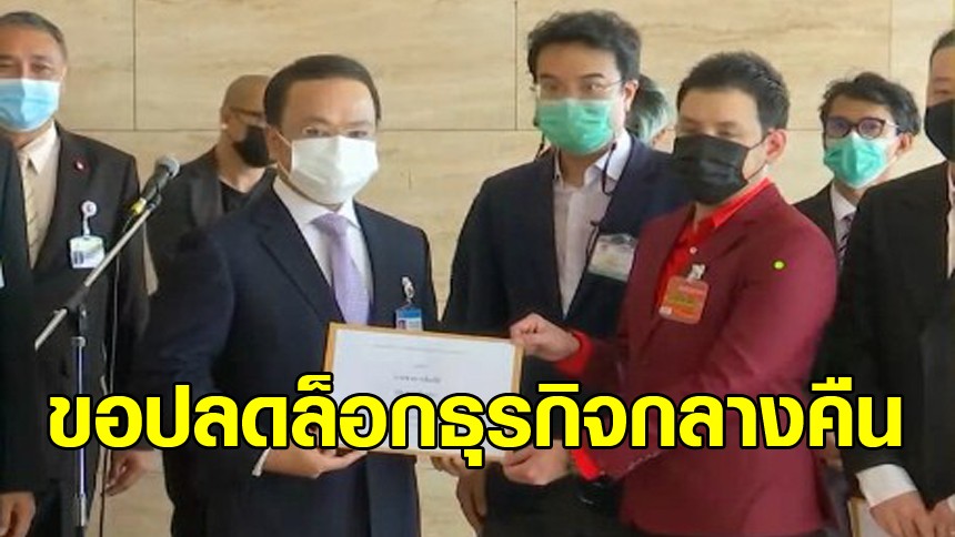 2.ข้อให้มีคำสั่งปลดล็อกเพื่อให้ธุรกิจกลางคืนและธุรกิจบันเทิงได้กลับมาเปิดบริการ และสามารถจัดกิจกรรมต่าง ๆ ได้ภายในวันที่ 1 กรกฏาคม 2564 โดยให้คงการปฏิบัติตามมาตรการคำสั่งของ ศบค.เพื่อรักษามาตรฐานการควบคุมโรค