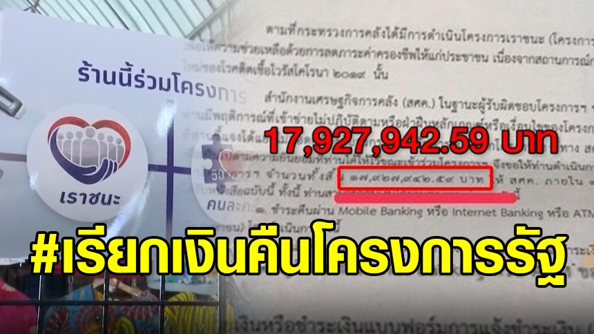 เสียงวิจารณ์ #เรียกเงินคืนโครงการรัฐ หลังร้านค้าทำผิดกฎ เจอหมายเรียกคืนเงิน ยอดสูงสุด 17 ล้าน