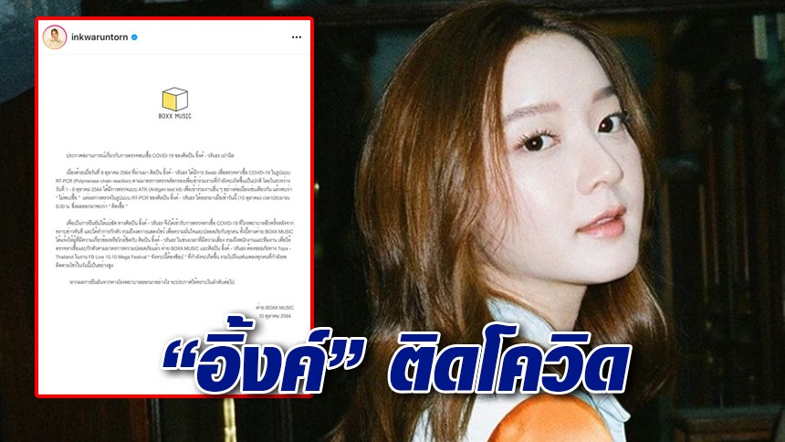 (10 ต.ค.) นักร้องสาว อิ้งค์-วรันธร เปานิล โพสต์ประกาศจากทางต้นสังกัด บ็อกซ์มิวสิค (BOXX MUSIC) แจ้งเรื่องการติดเชื้อโควิด-19 ผ่านทางอินสตราแกรมส่วนตัว พร้อมระบุว่า
