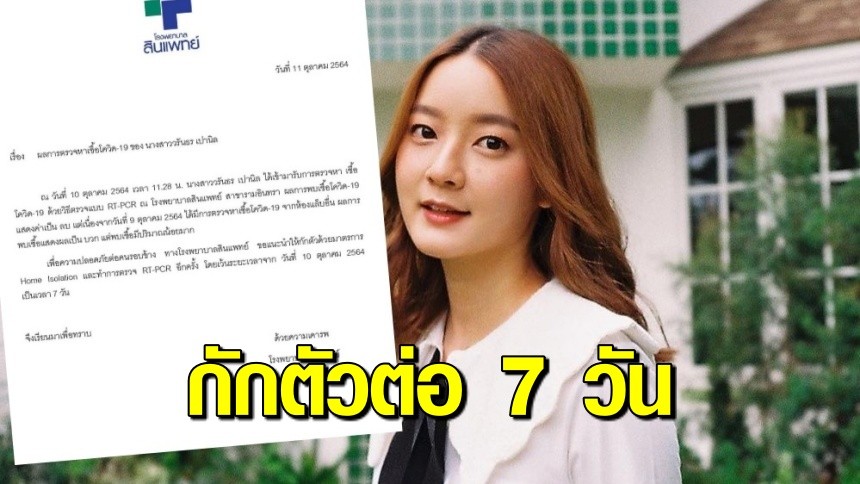 ขณะที่เจ้าตัวยังได้โพสต์ข้อความบอกด้วยว่า “อัพเดทผลการตรวจ RT-PCR ของอิ้งค์จากทางโรงพยาบาลสินแพทย์ รามอินทรา เมื่อวันที่ 10 ตุลาคม 2564 ผลออกมา ไม่พบเชื้อ แต่เพื่อความปลอดภัยของทุกฝ่าย จะทำการ Home Isolation เป็นเวลา 7 วัน และปฏิบัติตามคำแนะนำของแพทย์อย่างเคร่งครัดค่ะ