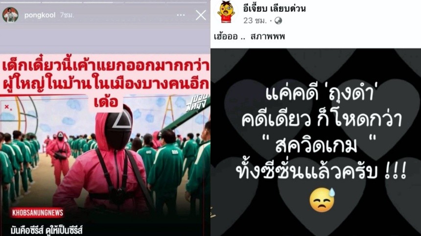 ด้านเพจดัง อีเจี๊ยบ เลียบด่วน โพสต์ระบุว่า “แค่คดีถุงดำ คดีเดียวก็โหดกว่า สควิดเกม ทั้งซีซั่นแล้วครับ” จากนั้นได้มีหนุ่ม กรรชัย พิธีกรดังแห่งโหนกระแส เข้าไปคอนเม้นต์ใต้โพสต์ดังกล่าวว่า “อุ๊ย”