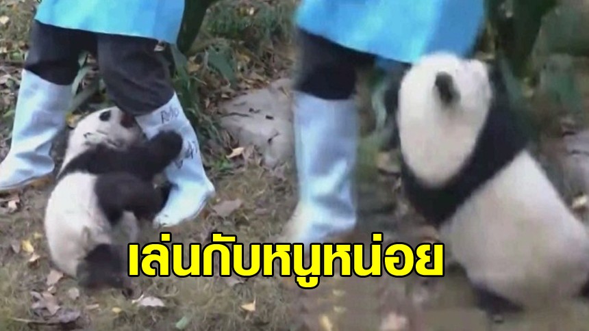 พี่เลี้ยงใจละลาย ลูกแพนด้าแสนซน เกาะขาแน่นเป็นตังเม ไม่ยอมปล่อย