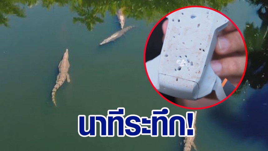 วินาที จระเข้ กระโดดขึ้นจากน้ำ โจมตีโดรนกลางอากาศ จนโดรนตกลงในน้ำ ที่อุทยานสัตว์ป่า ในเมืองดาร์วิน ออสเตรเลีย แต่สุดท้าย มีคนเจอโดรน และกู้ไฟล์ออกมาได้สำเร็จ