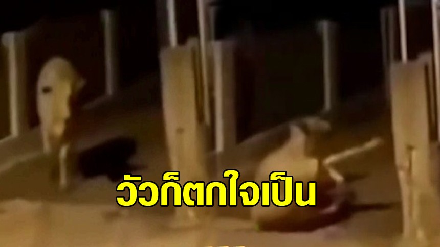 น้องวัวเสียทรง โดนมนุษย์แกล้ง ตกใจแรงมาก จนหงายท้องตึง