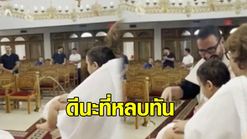 ทารกโชว์พลังฉี่พุ่ง เกือบโดนบาทหลวง ขณะเข้าพิธีล้างบาป