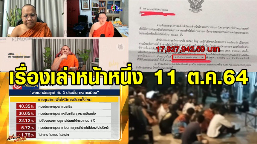 เรื่องเล่าหน้าหนึ่ง 11 ต.ค.64 ดราม่าเรียกคืนเงินโครงการรัฐ-พระมหาสมปองโดนจ้องจับสึก-เตือนดูซีรีส์ Squid Game