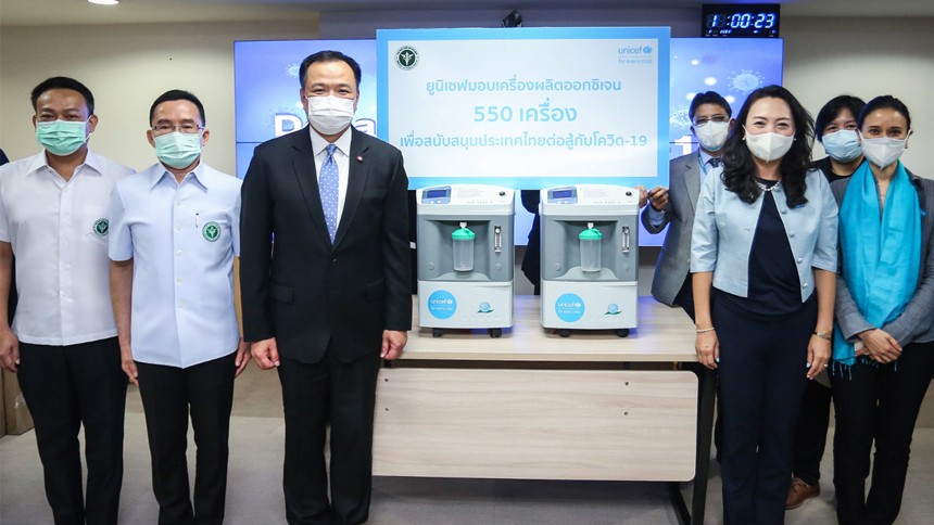 ยูนิเซฟมอบเครื่องผลิตออกซิเจน 550 เครื่องเพื่อสนับสนุนประเทศไทยสู้โควิด-19
