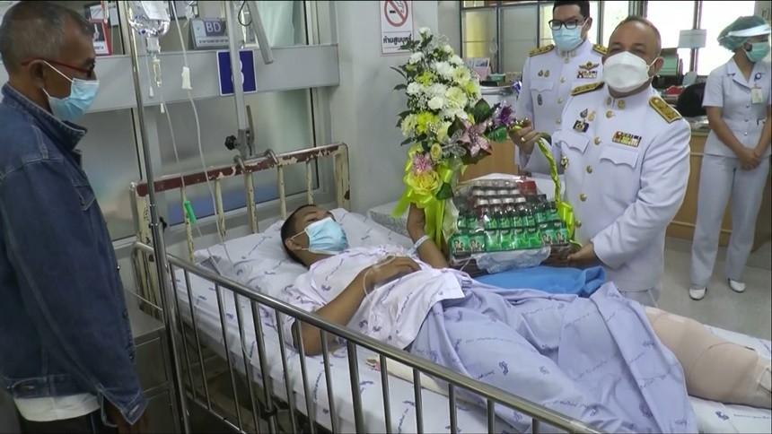 รองผู้ว่าราชการจังหวัดนราธิวาส เชิญดอกไม้ และตะกร้าสิ่งของพระราชทาน มอบแก่ประชาชนที่บาดเจ็บ จากเหตุการณ์ความไม่สงบในพื้นที่