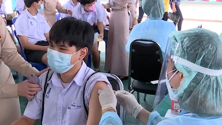 ที่โรงเรียนพิบูลอุปถัมภ์ เขตห้วยขวาง กทม. มีนักเรียน สมัครใจเข้าฉีดวัคซีน 695 คน การฉีดวัคซีนให้กับนักเรียนเพื่อรับการเปิดภาคเรียนในวันที่ 1 พฤศจิกายนนี้ มีเป้าหมายจะฉีดให้ครบ 5 ล้านคน ขณะนี้ มีเด็กและผู้ปกครองสมัครใจฉีดแล้วกว่า ร้อยละ 80