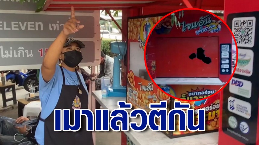 นนทบุรี วงจรปิด ร้านลูกชิ้นเจ้าดังสุดซวย โดนลูกหลงกลุ่มคนเมาทะเลาะวิวาทร้านพังยับ