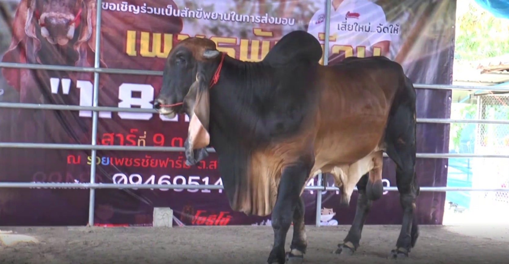 ผู้สื่อข่าวรายงานที่บริเวณ รวยเพชรชัยฟาร์ม 7 ตำบลสายทอง อำเภอป่าโมก จังหวัดอ่างทอง พบความฮือฮา ในการซื้อขายวัว เจ้าเพชรพันล้าน วัวฮินดูบราซิล เพศผู้ อายุ 2 ปี ซึ่งมีรูปร่างหน้าตาดี หูยาว หน้าโก่ง ใบหูใหญ่ยาว หางยาว สีแดงดู่ หรือสีทองเม็ดมะขาม ที่มีการซื้อขายกันอยู่ในราคา 1.8 ล้านบาท โดยมีการส่งมอบเงินและวัว ซึ่งมีชาวบ้านและเกษตรกรผู้เลี้ยงวัวพันธุ์มาเป็นสักขีพยานกันอย่างคึกคัก