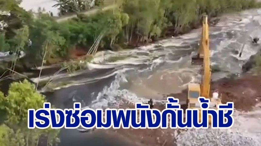 เร่งซ่อมพนังกั้นน้ำชีขาด ทำน้ำทะลักท่วมนาข้าวเสียหาย