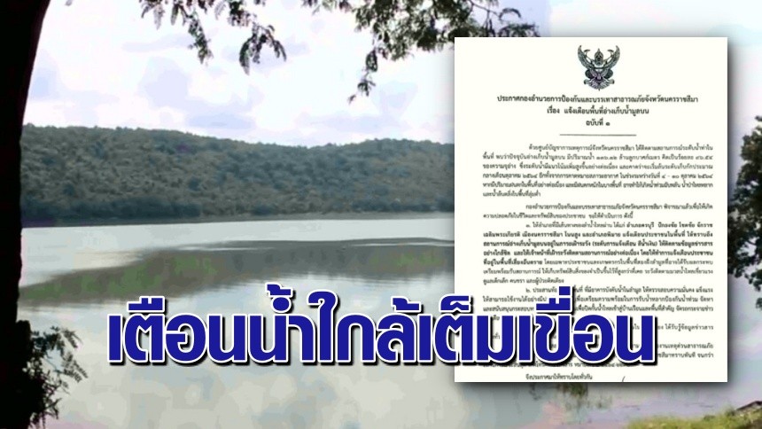 แจ้งเตือน 4 อำเภอโคราช หลังน้ำใกล้เต็มเขื่อนมูลบน พบปริมาณน้ำเกิน 96%
