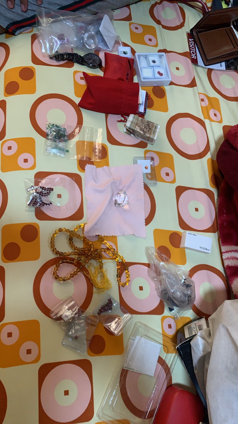 - หินสีคล้ายเพชร และอัญมณี จำนวนมาก รวมจำนวน 100 กว่าชิ้น ประเมินมูลค่ารวม 600,000 บาท