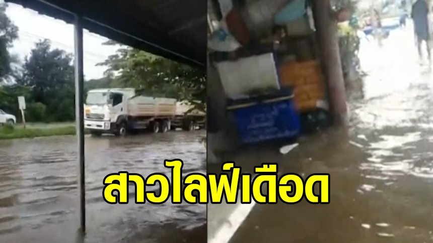 สาวสุดทนไลฟ์เดือด โมโหน้ำท่วมบ้าน แล้วยังมาเจอสิบล้อวิ่งซัดคลื่นเข้าบ้าน