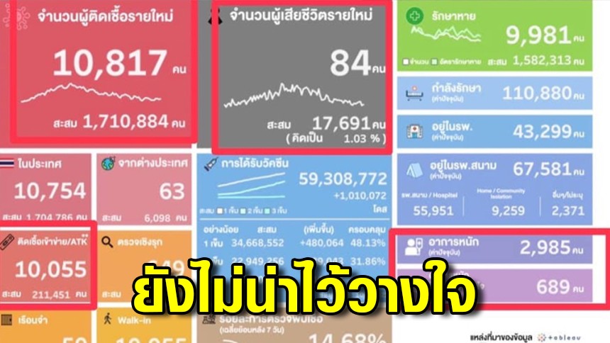 จำนวนผู้ติดเชื้อกำลังขาขึ้นอีกครั้งอย่างชัดเจนแล้ว ผู้ป่วยหนักยังร่วม 3 พันราย ถือว่ายังไม่ลด ซึ่งสอดคล้องจำนวนผู้ติดเชื้อ ปกติป่วยสีแดงราว 10% หากคำนวณ 3,000 รายนี้กลับไป เราน่าจะมีผู้ติดเชื้อราวไม่ต่ำกว่าวันละ 30,000 คน ในขณะที่ยอดการตรวจเชิงรุกลดลง หากตรวจมากขึ้นในหลายพื้นที่ อัตราการติดเชื้อในชุมชนสูงมากกว่าร้อยละ 20
