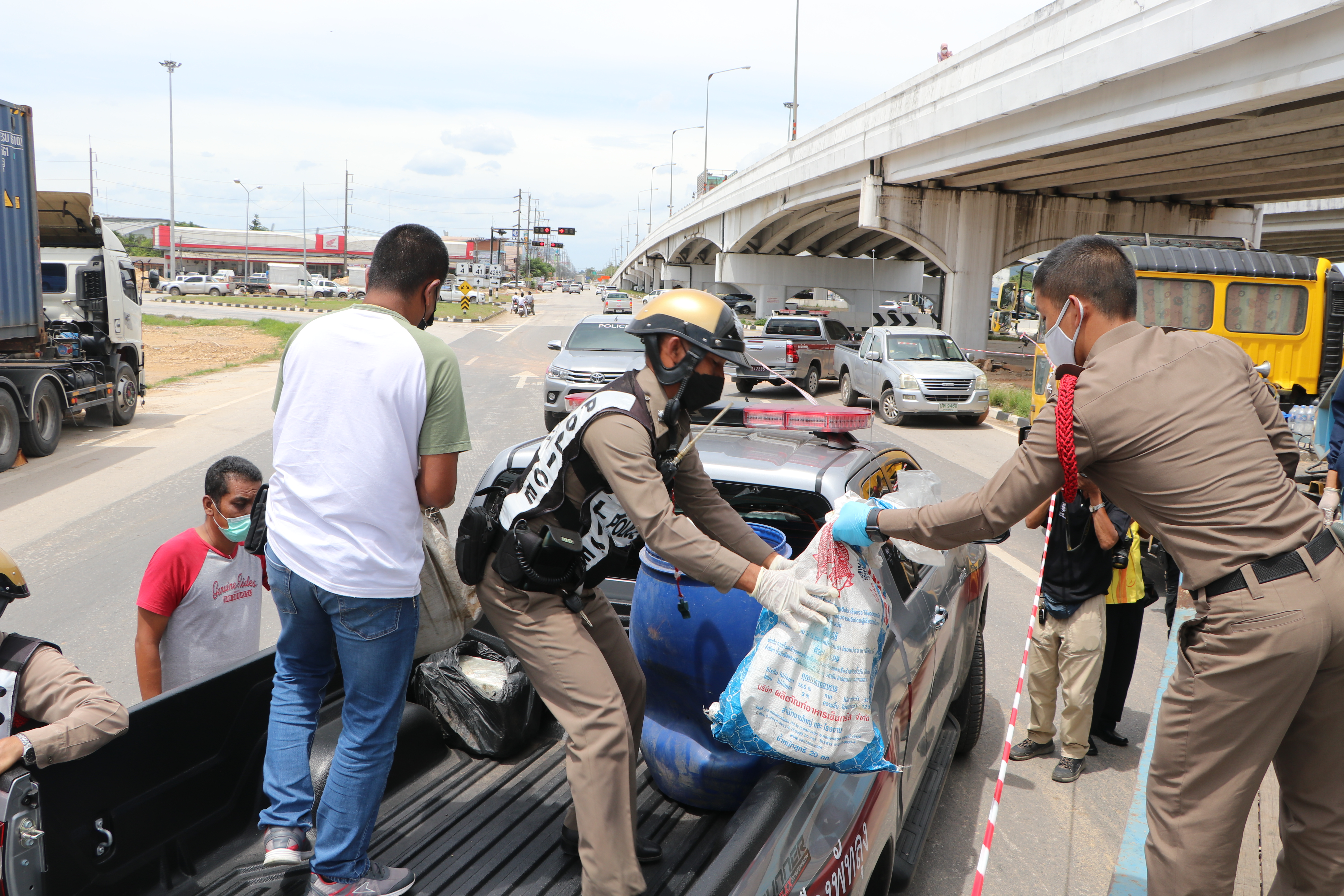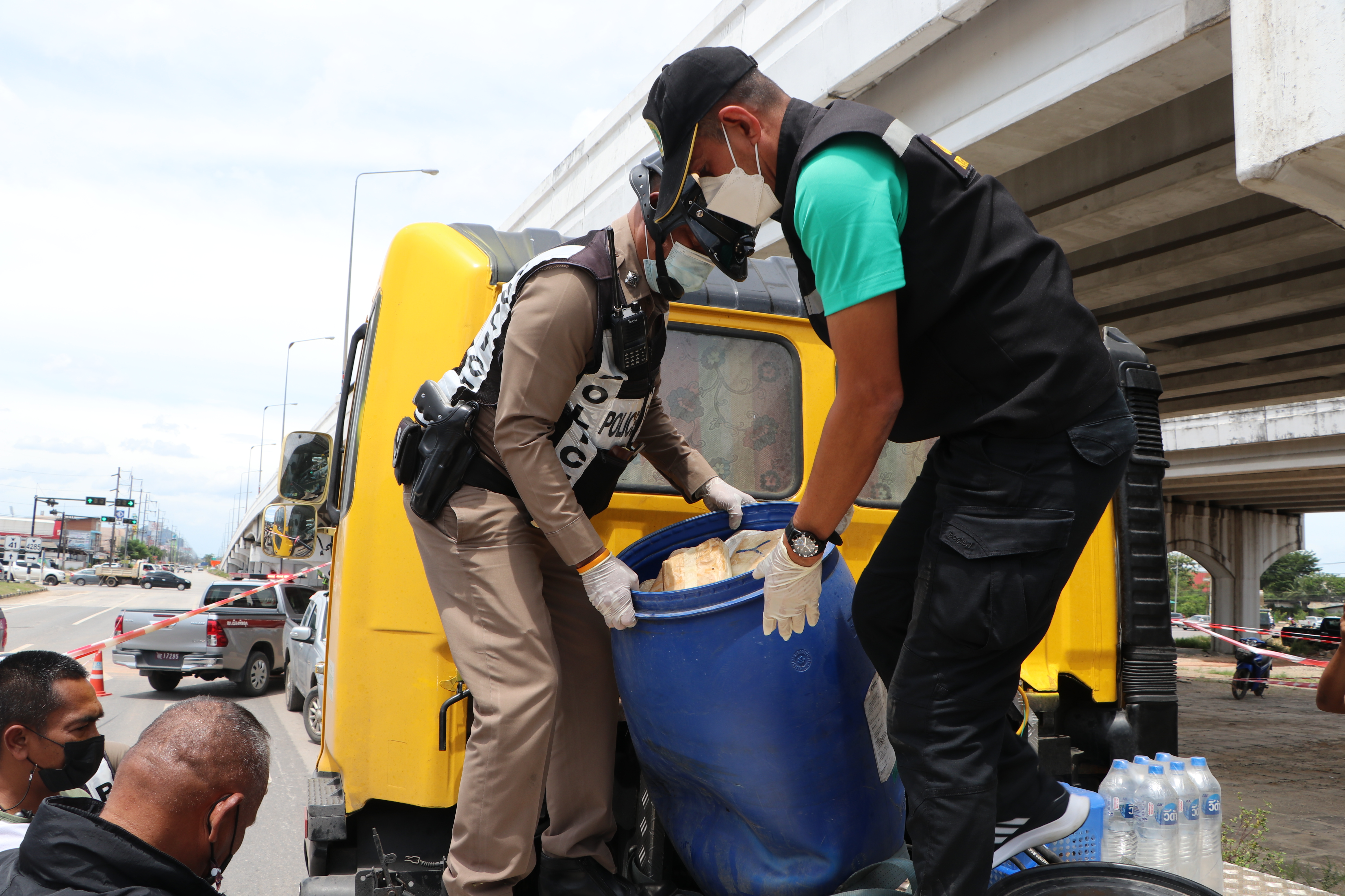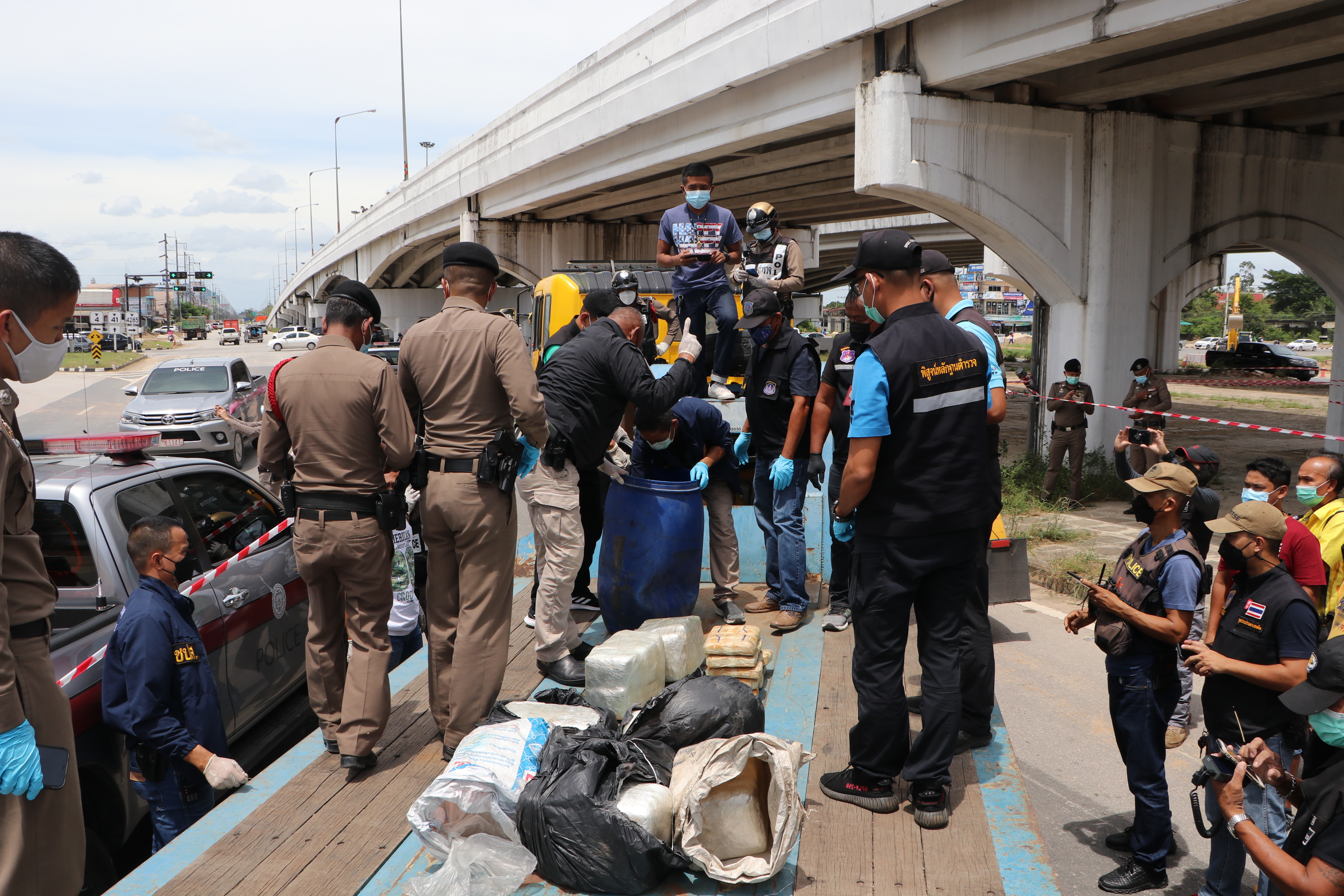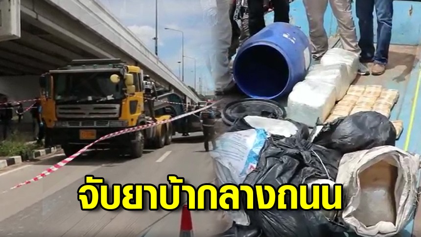 จับกลางถนน! รถเทรลเลอร์จะยูเทิร์น ทำยาบ้าหล่น ตำรวจเข้าตรวจสอบพบอีกกว่า 1 ล้านเม็ด
