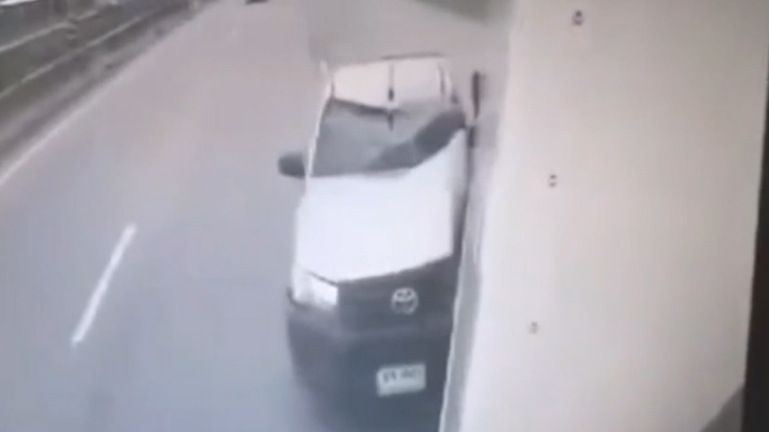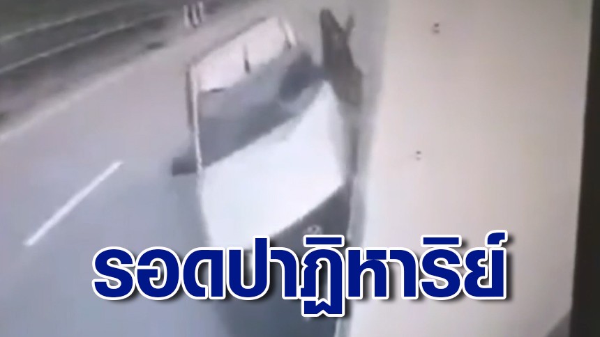 วงจรปิดกล้องหน้าจับภาพนาทีระทึก รถกระบะสีขาวขับมาด้วยความเร็ว พุ่งชนรถบรรทุก จนด้านขวาพังเสียหาย จากนั้นรถยังพุ่งตกลงไปที่เกาะกลางถนน เมื่อตกลงไปสังเกตได้ว่ารถยังวิ่งอยู่ ก่อนไปหยุดชนต้นเสา