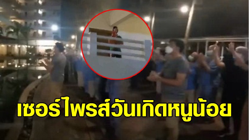 โดยเจ้าหน้าที่ซึ่งอยู่ด้านนอกหอผู้ป่วยโควิด-19 เปิดเพลง Happy Birthday พร้อมกับเปิดแฟลชโทรศัพท์มือถือ ชูขึ้นโบกไปมา ให้หนูน้อยที่อยู่บนอาคาร โดยคุณพ่อของน้อง อุ้มน้องออกมาที่ระเบียง เพื่อจะได้มองเห็นชัดๆ และยังมีผู้ป่วยโควิดที่อยู่หอผู้ป่วยเดียวกัน ออกมาร่วมแสดงความยินดีกับน้องด้วย เรียกว่าเป็นคลิปน่ารักๆ ที่สร้างขวัญและกำลังใจให้กับบุคลากรทางการแพทย์และผู้ป่วยด้วย