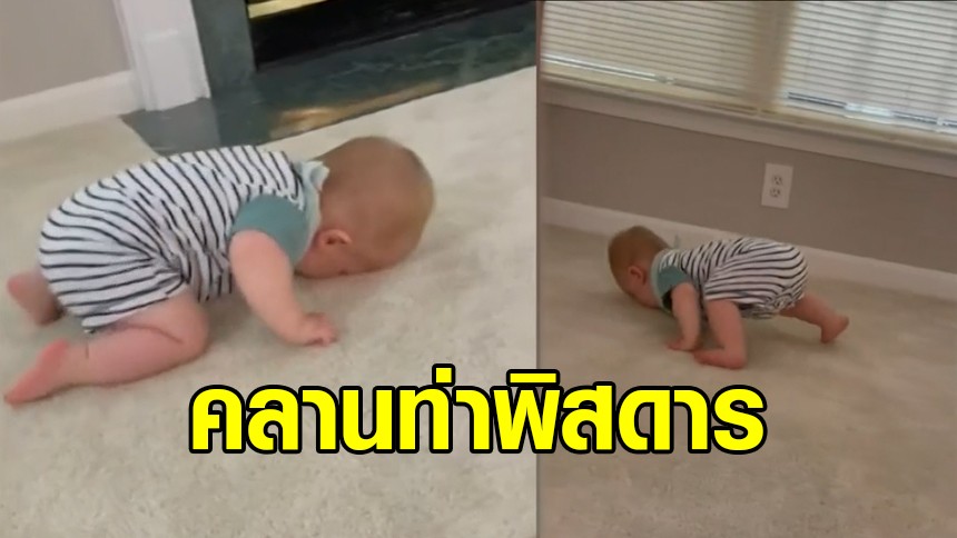 หนูน้อยคลานท่าพิสดาร ศีรษะไถไปกับพื้น