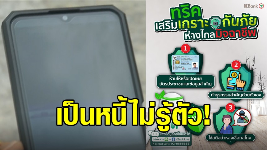 เป็นหนี้ไม่รู้ตัว! 'กสิกรไทย' เตือนระวังแก๊งหลอกกู้เงินออนไลน์ ด้วยบัตร ปชช.ใบเดียว