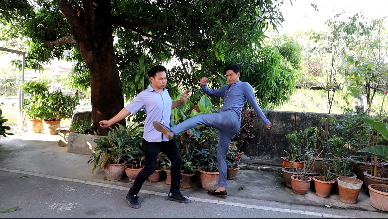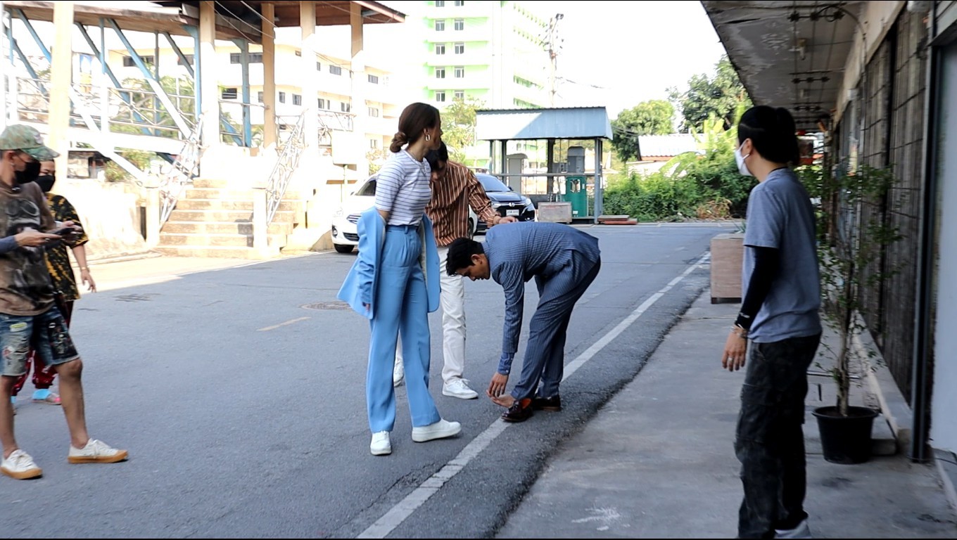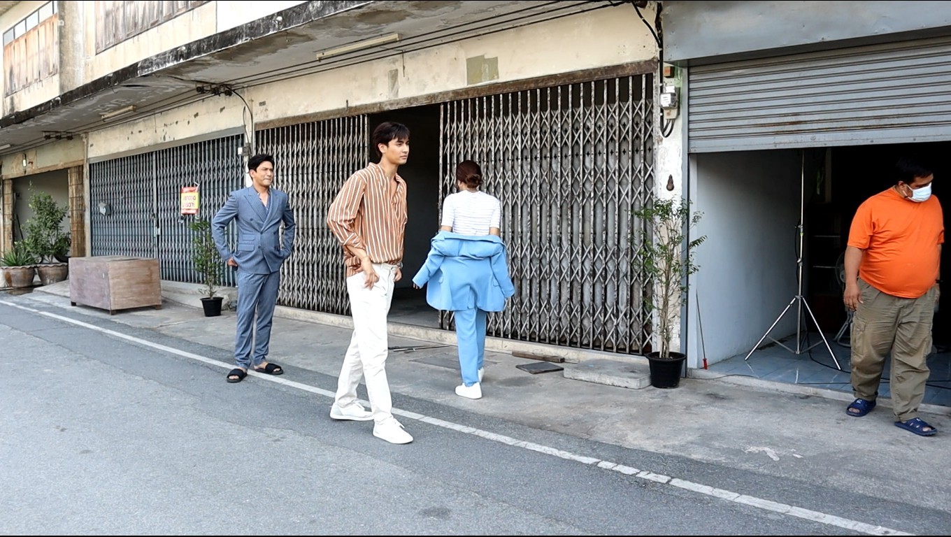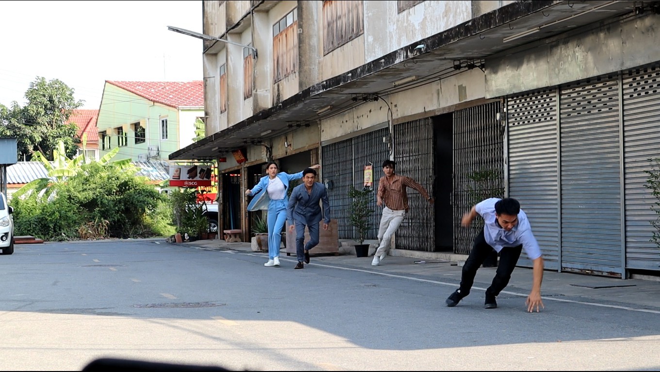 เริ่มซ้อมทุกคนก็แทบร่วงเพราะถ่ายกลางแดดเปรี้ยงและวิ่งแบบยาวๆเก็บภาพกว้าง ทั้งสามคนใส่กันไม่ยั้ง วิ่งแบบลืมเหนื่อย พรีมที่ดูจะอ่อนแอสุดเพราะเป็นผู้หญิงก็รั้งท้ายเป็นธรรมดา พอสักสองรอบไปแล้วพรีมขอต่อรองให้ทุกคนช่วยวิ่งช้าๆ หน่อย หลังถ่ายคัทแรกผ่านไปเราก็ได้เห็นพลังในการสับเท้าของป๋อชนิดที่รองเท้าเปิดเล็บฉีกกันเลย เพราะเป็นคนเดียวที่ต้องใส่รองเท้าหนัง (เหมือนทีมงานแกล้ง แต่บังเอิญมันต่อเนื่องมาแล้วเปลี่ยนไม่ได้) พอถ่ายคัทแคบๆ เราก็จะได้เห็นป๋อใส่รองเท้าแตะเล่นแบบฮาๆ ฉากนี้ต้องบอกเลยว่า ทั้งป๋อ ไอซ์ พรีมวิ่งกันจนลมแทบจับกว่าจะได้ฉากไล่ล่าสวยๆ มาฝากทุกคน ตบท้ายด้วยบู๊ของป๋อกับโจรแบบเท่ๆ อีกชุดใหญ่ คนที่เหนื่อยคือป๋อ คนที่ลุ้นคือพรีมกับไอซ์ จนมีคนแซวว่า แทนที่ป๋อจะสบาย ได้รับการดูแลเพราะเป็นรุ่นใหญ่ ปล่อยให้เด็กๆ รับหน้าที่หนักไป แต่กลายเป็นคนแก่เหนื่อยให้เด็กๆ ดู โถๆๆๆๆ เอ็นดูป๋อจริงๆ แต่ฉากนี้ถ้าไม่ใช่ป๋อก็ไม่รู้ว่าจะได้ทั้งภาพและความสนุกขนาดนี้หรือไม่