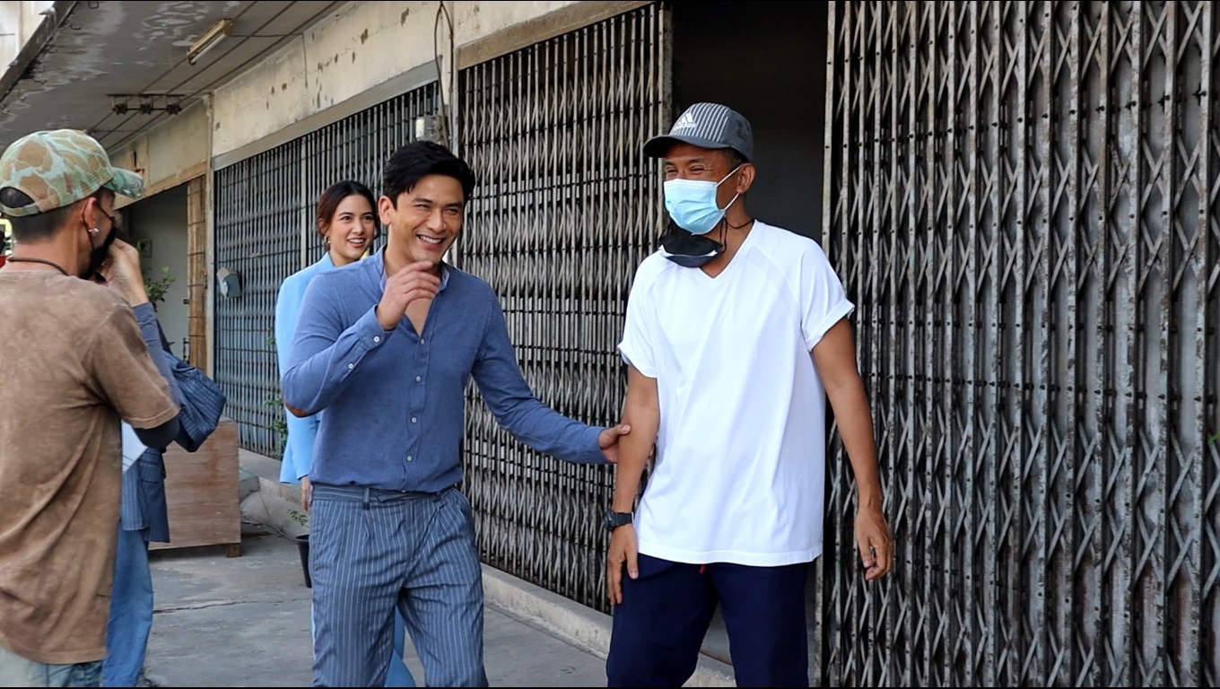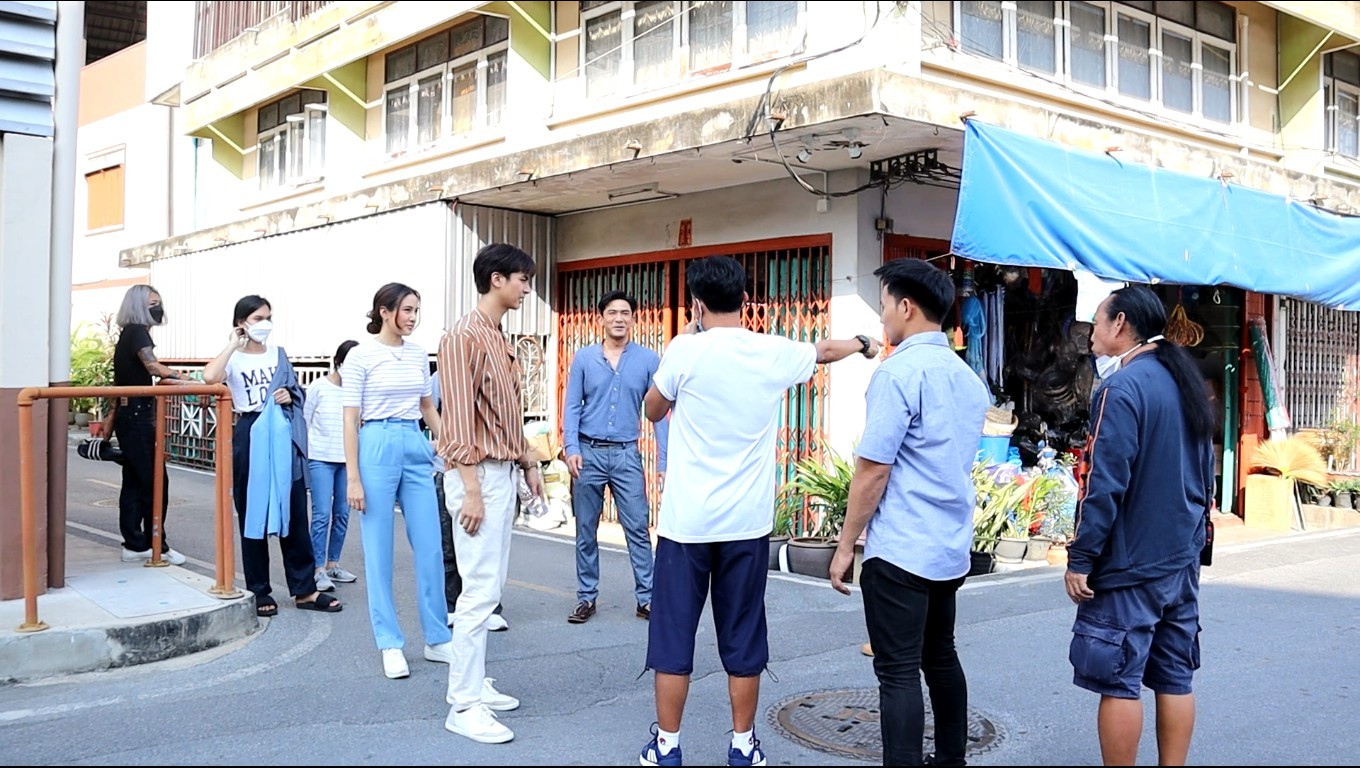 เป็นฉาก วิม (ป๋อ) พา พลอยรุ้ง (พรีม) กับ ณพงศ์ (ไอซ์) มาจับมือโพสต์ปล่อยข่าวเท็จทำลายบริษัทที่ห้องเช่าในตึกแถวกลางตลาด วิมพังประตูเข้าไปถึงรังของคนร้าย แต่คนร้ายโดดหน้าต่างหนี แก๊งของวิมต้องวิ่งตามไล่ล่ากันพักใหญ่ แต่สุดท้ายวิมก็เป็นฮีโร่จัดการคนร้ายได้ทันที ฉากนี้ถ่ายกันที่ห้องแถวตึกสองชั้นย่านตลาดบางบัวทอง ถือเป็นฉากใหญ่และใช้เวลามากอีกหนึ่งฉากของทีมงาน โดยมีป๋อ ไอซ์ พรีม ตัวตึงของเรื่องเข้าฉาก พี่ดุลย์ ผกก. ซ้อมบล็อคกิ้งยาวๆ เริ่มจากป๋อและสองหลานวิ่งออกจากตึกไล่โจร ระยะทางก็ประมาณ 500 เมตร แต่การวิ่งต้องถ่ายหลายรอบ ทุกคนก็จะแซวป๋อไหวมั้ย เพราะอายุมากที่สุด แต่ป๋อก็โชว์เก๋า อวดดีกรีพระเอกนักบู๊ในตำนาน แค่วิ่งสบายมาก แถมยังเป็นห่วงพรีมกับไอซ์ กลัวจะไม่ไหว