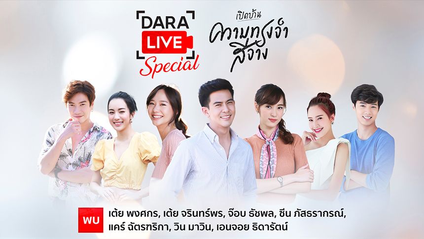 Dara Live Special เปิดบ้าน "ความทรงจำสีจาง" พบกับ เต้ย พงศกร, เต้ย จรินทร์พร, จ๊อบ ธัชพล, ซีน ภัสธรากรณ์, แคร์ ฉัตรฑริกา, วิน มาวิน และ เอนจอย ธิดารัตน์ ทำความรู้จักแต่ละตัวละครกันรับชมละครในตอนแรก