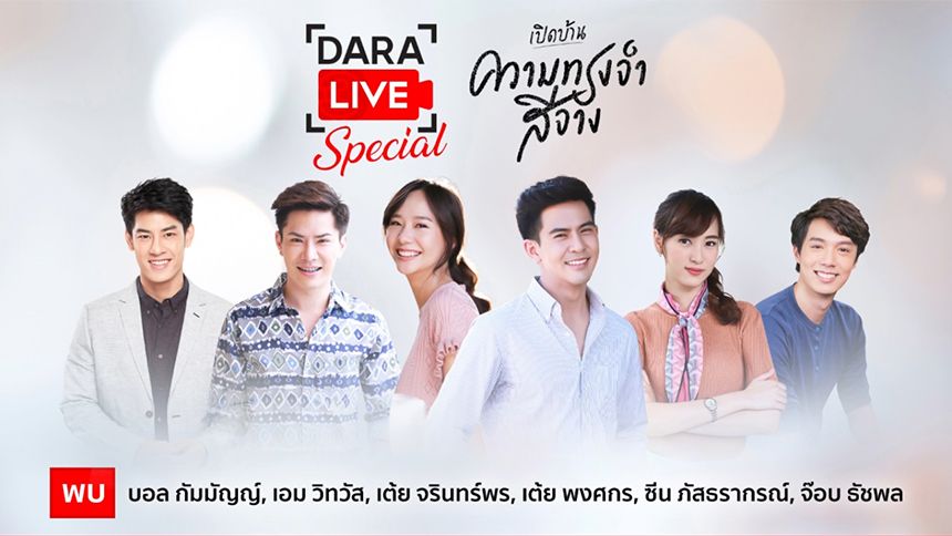 มาเปิดบ้าน "ความทรงจำสีจาง" กันอีกครั้ง ใน Dara Live Special มาพูดคุยกันสดๆ และพบกิจกรรมสนุกๆ กับ เต้ย พงศกร, เต้ย จรินทร์พร, ซีน ภัสธรากรณ์, จ๊อบ ธัชพล, บอล กัมมัญญ์ และ เอม วิทวัส