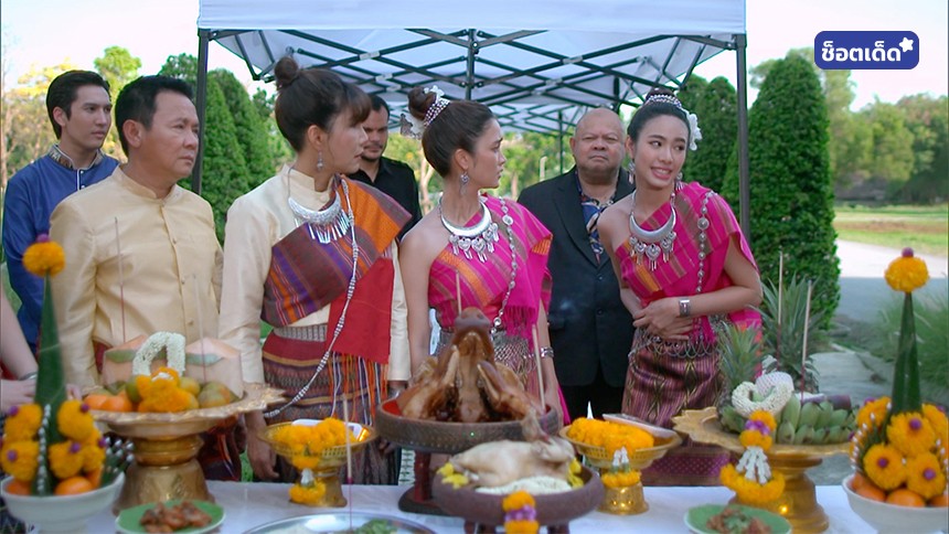 สะใภ้เจ้าสัว ถึงวันงานรำแก้บนตามที่อาหลิว (แก้ว อภิรดี) ตั้งใจไว้ว่าถ้าไตรวิช (โอม คณิน) ปลอดภัยก็จะรำถวาย ทุกคนแต่งตัวจัดเต็มเพื่อจะมารำด้วยกัน อรณิชา(ชมพู ชุติมณฑน์ )ก็มาด้วยชุดที่เหมือนฟ้าใส(พริม พริมา)เป๊ะแต่แสร้งว่าบังเอิญ เสี่ยลีวางแผนให้ลูกน้องจับฟ้าใสไปขังไว้ตอนที่กำลังจะทำพิธีรำแก้บน อาหลิวจะได้โกรธฟ้าใสแล้วหันมาเอ็นดูอรณิชาแทน โดยอรณิชาหลอกให้ฟ้าใสพาไปเข้าห้องน้ำแล้วจะได้ขังฟ้าใสไว้ในนั้น แต่งานนี้ดันผิดแผนกลายเป็นอรณิชาที่ถูกจับไปแทน ฟ้าใสโมโหที่ถูกอรณิชาขังไว้ที่ห้องน้ำจะมาเอาเรื่อง แต่ไตรวิชเข้ามาบอกว่าถึงเวลาแล้วทำให้ฟ้าใสต้องรีบไปแก้บนเสียก่อน อรณิชาหายตัวไป ทุกคนช่วยกันตามหา อรณิชากรี๊ดร้องเสียงดังในขณะที่ถุงถุงผ้าคลุมหัว ไตรวิชกับฟ้าใสได้ยินรีบเข้าไปช่วยอรณิชา แผนสกัดสะใภ้เจ้าสัวล้มไม่เป็นท่า และความลับของอรณิชาจะแตกหรือไม่! ต้องติดตาม สะใภ้เจ้าสัว